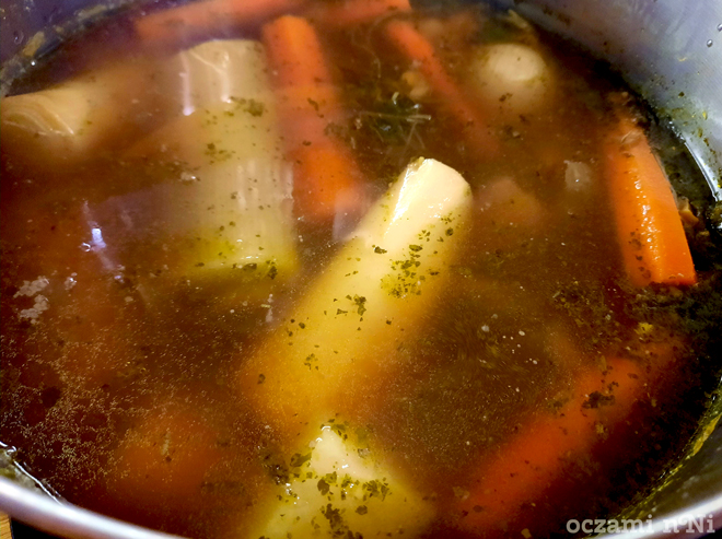 – kilka ziaren ziela angielskiego i pieprzu czarnego (lub piramidka smaku do rosołu)