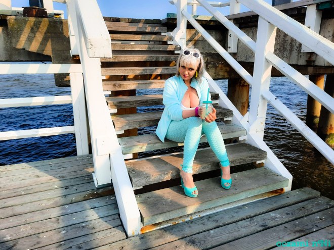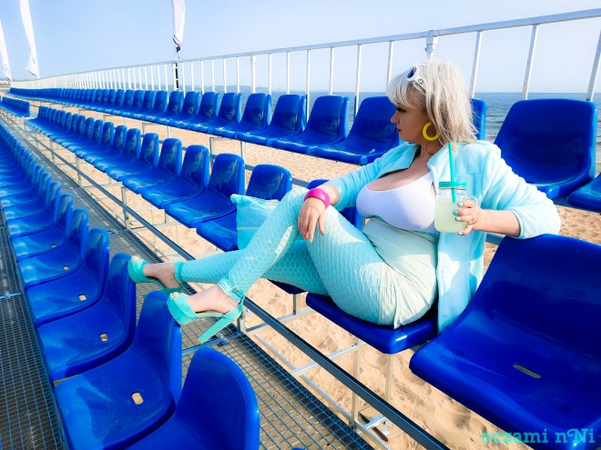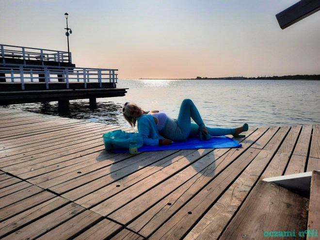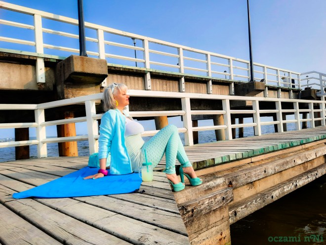 Wszystko zaczęło się od tego, że kupiłam kubek. A nawet nie kubek, tylko słoik ze słomką w pobliskim sklepie z estetyczną taniochą. Nastały fale gorąca, a wraz z nimi przemiła konieczność chłodzenia mrożonych herbat, kaw i lemoniad kostkami lodu. Chciałam mieć własny słoik z uszkiem zakręcany kolorową nakrętką, z której sterczy dumnie słomka. Taki, po który miło byłoby sięgać podczas lektury połączonej z opalaniem na naszym nasłonecznionym tarasie. W sklepie spośród wielu kolorów (zakrętek i słomek) najbardziej urzekł mnie kolor miętowy. W domu szybko przypomniało mi się, że mam też lakier do paznokci w tym samym odcieniu. Dzielił mnie więc tylko krok od nieuniknionej katastrofy – kolejnej wizji sesji zdjęciowej, rozgrzeszającej dokonywanie internetowych zakupów. Miętowe legginsy, bluzę, szpilki i torbę plażową później byłam gotowa na zapozowanie z morzem, jakie całkiem niedawno, oczarowana, odkryłam – w magicznej jego porannej odsłonie.