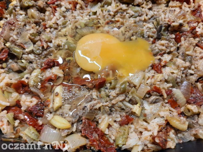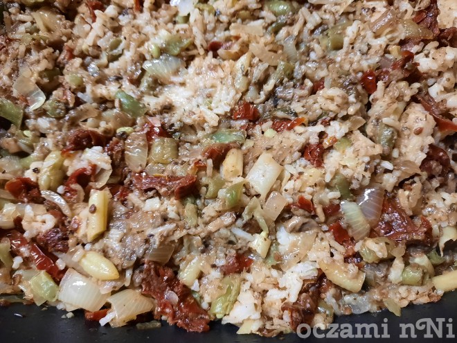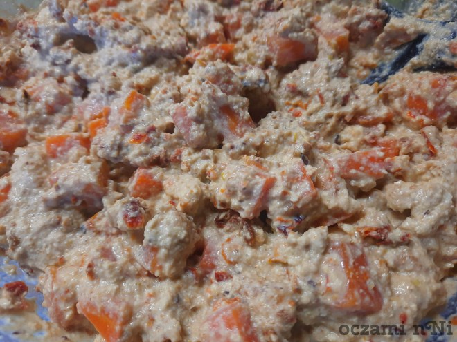 – pół słoika krojonych suszonych pomidorów odsączonych z oliwy