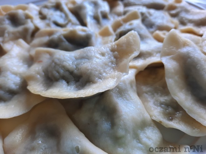 *W tym miejscu warto chyba zaznaczyć, że nie piszę o tym z powodu wyznawania straszliwej i głupiej patriarchalnej filozofii, że jako kobieta zostałam stworzona do gotowania „swojemu” mężczyźnie (on nie mój, on swój chłop jest!), czy że w kuchni jako kobiety walczymy między sobą, która lepiej mężczyznę przy sobie utrzyma, trafiając przez jego żołądek do serca! Wspomniałam o mocno zauważalnym zauroczeniu Partnera moimi pierogami () nie po to, by w Czytelnikach wzbudzić większy zachwyt. Ot, moje pierogi wyszły, okazały się przepyszne i są właśnie tak widziane nie tylko oczami nNi.