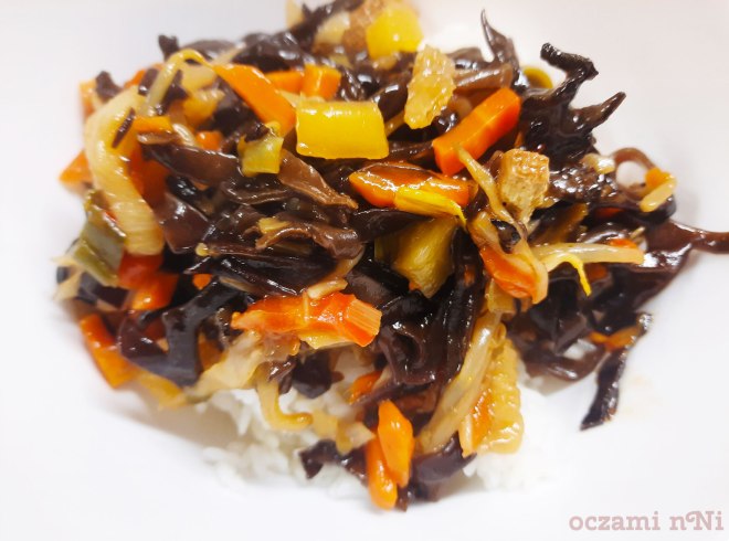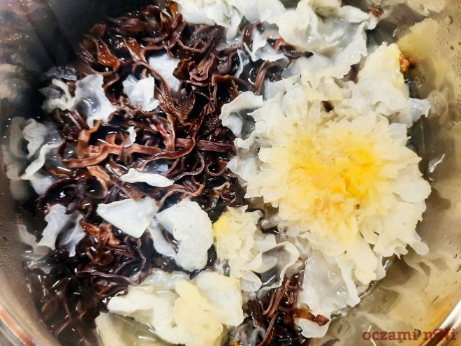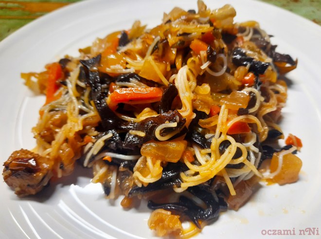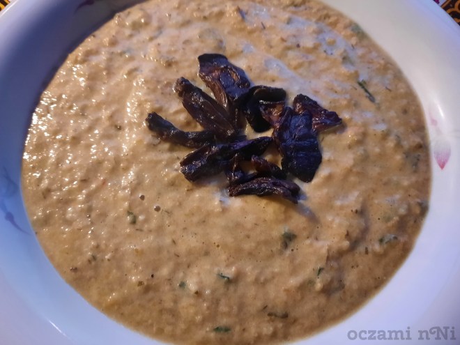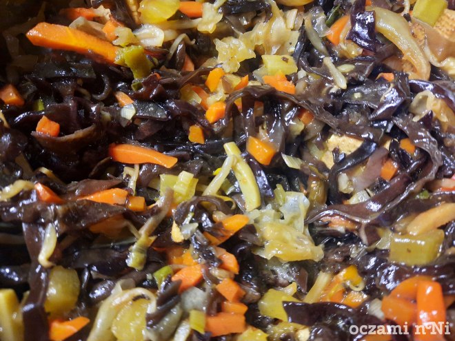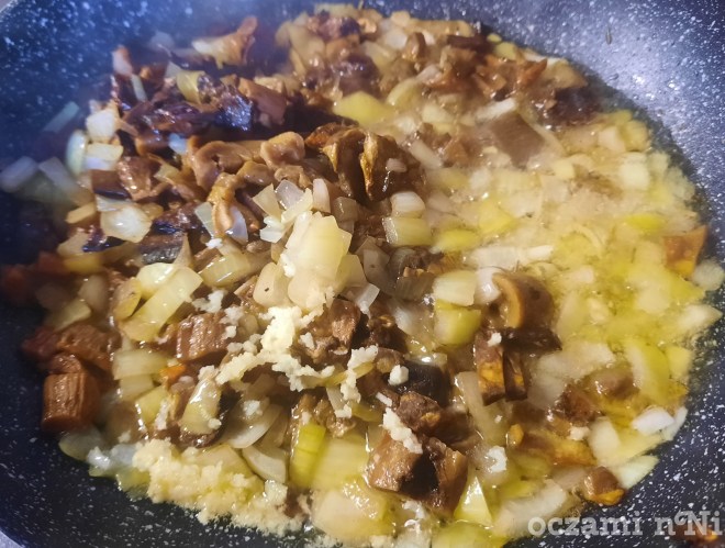 – koncentrat grzybowy (dodałam własny, składający się z pieczarek, suszonych borowików i prawdziwków z cebulką i kostką grzybową)