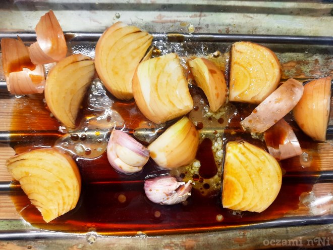 *Swój sos chrzanowy przygotowałam od początku do końca w tym samym dniu, jednak jeśli mamy więcej czasu pierwszego dnia, a mniej drugiego, można pierwszy etap sosu chrzanowego (koniec zaznaczony gwiazdką) zrobić – razem z marynatą – dzień wcześniej.