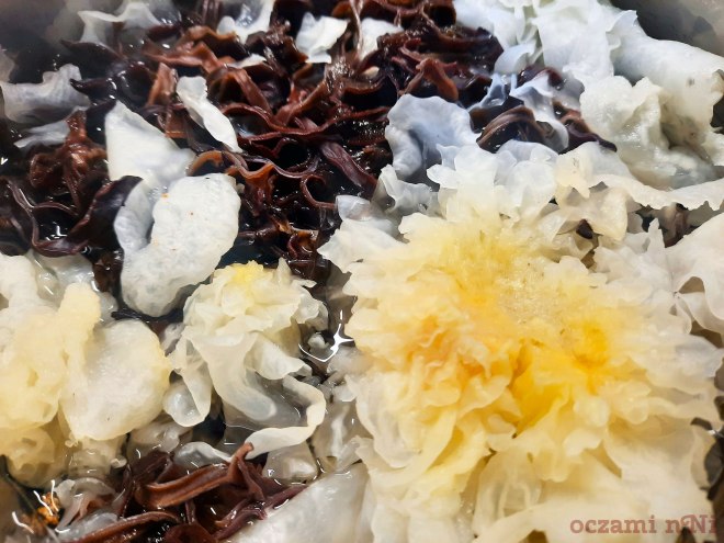 Moja improwizacja na temat ozorków zaczęła się od sosu chrzanowego. Znakomicie gotująca przyjaciółka w pewnej telefonicznej rozmowie przypomniała mi o prostym i pysznym daniu, jakim są jajka w sosie chrzanowym. Po jakimś czasie sama nabrałam na nie apetytu, stwierdzając, że idealnie wpisują się w obecną aurę i poszłam czarować do kuchni. Partner był rezultatem zachwycony, niemal ze łzami w oczach wspominając bary mleczne ze słusznie skądinąd minionej epoki PRL-u. Miałam w planach przygotowanie potrawy dziękczynNej dla Tymona Tymańskiego za jego znakomite „Republikacje” (o których wkrótce napiszę), więc plany te zaczęły się nagle krystalizować. Sos dziękczynNy przygotowałam nieco inaczej niż ten, którego sukces mnie zainspirował. Po pierwsze, dlatego że gotowanie jednej potrawy dwa razy w ten sam sposób mnie nudzi, a zwłaszcza jesienią muszę walczyć z własnym życiem o dopaminę jak lwica, a po drugie… Drugiego w sumie jednak nie ma. Na horyzoncie moich wizji zaczęły majaczyć ozorki, a internet w sugerowaniu ich wegetariańskich zamienNików okazał się nad wyraz bezużyteczny. Pomyślałam więc, że dobra marynata będzie kluczem do sukcesu w kwestii smaku, a do oryginału trzeba zbliżyć konsystencję i wygląd. Boczniaki okazały się wyborem najbardziej oczywistym.