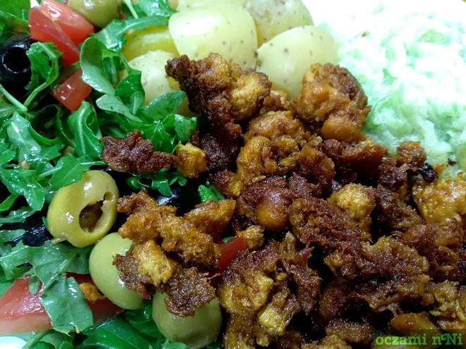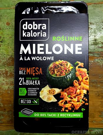 Dobrą Kalorię cenię przede wszystkim za klopsy klasyczne, które już szczegółowo opisywałam i gyrosa, któremu poświęcę trochę blogowego miejsca za chwilę. Jeśli chodzi o roślinne mielone, nie polecam go do wszystkiego. Na przykład wegetariańskie spaghetti bolognese, mówiąc nieskromnie, wyszło mi znacznie lepiej (i zdecydowanie taniej – przepis TUTAJ) niż z użyciem tego gotowego zamiennika mięsa. Fantastycznie jednak się sprawdziło w potrawce, którą spontanicznie jakiś czas temu przygotowałam. Oczywiście wszelkie modyfikacje mile widziane!